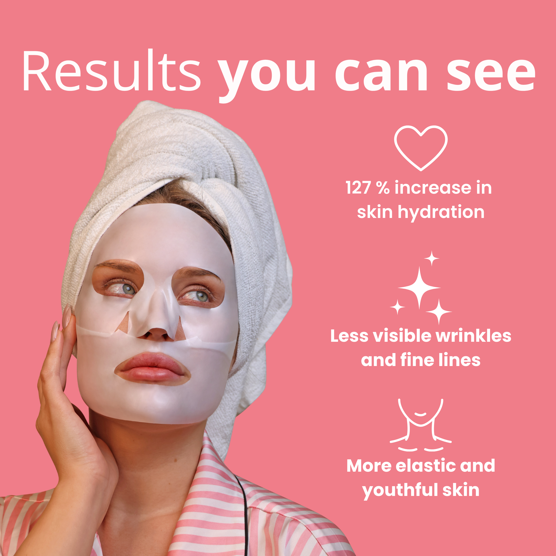 Voor het beste resultaat raden wij aan het collageenmasker 1 tot 2 keer per week te gebruiken.
