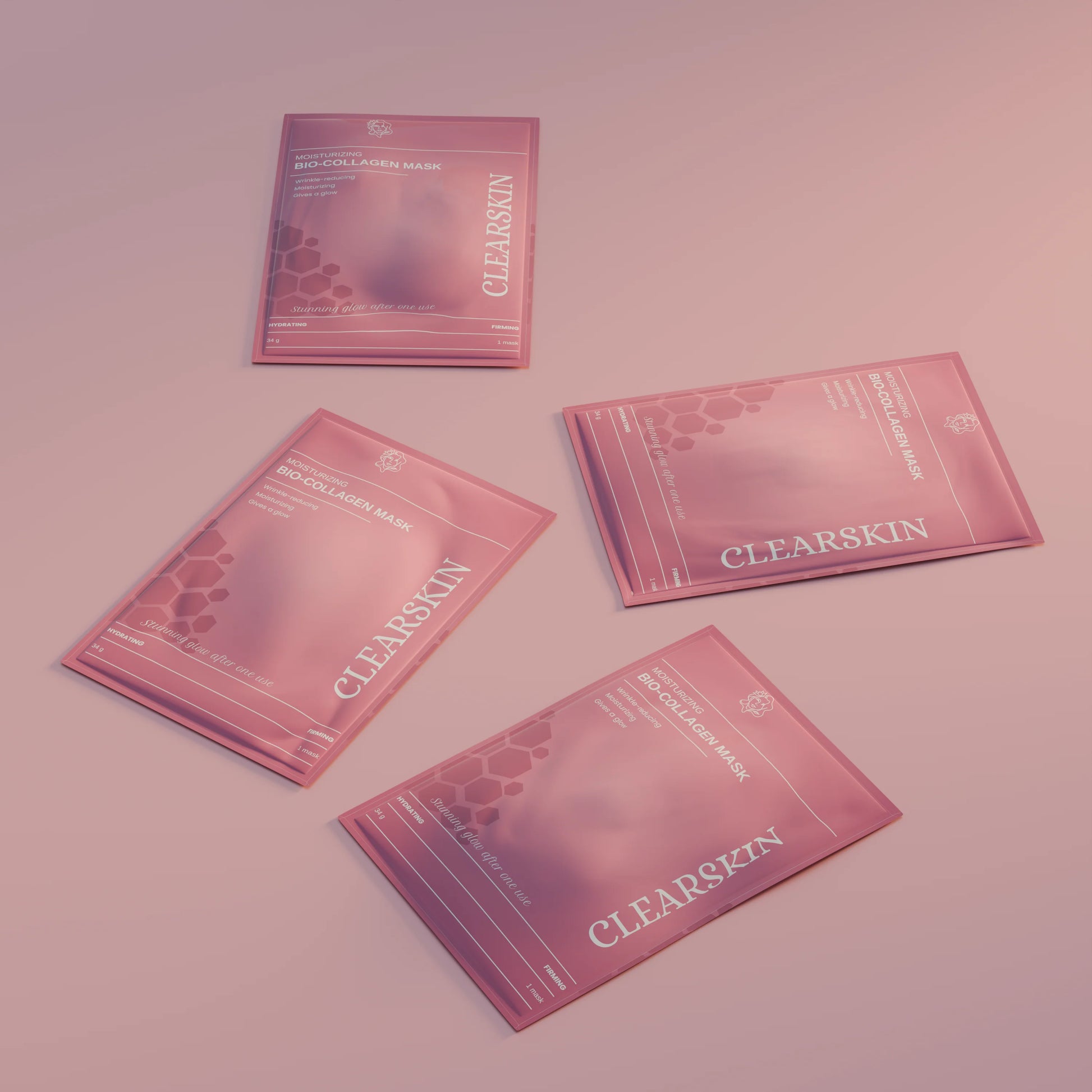Clearskins kollagenmask är utvecklad för att tillföra lågmolekylärt kollagen som huden kan absorbera och använda för att stimulera sin egen kollagenproduktion.